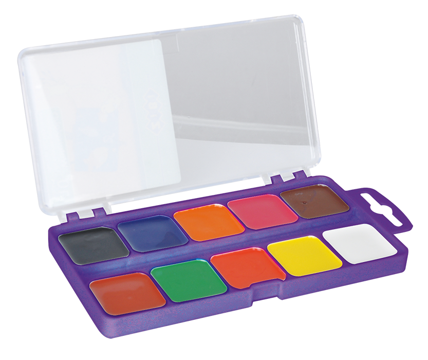 - упаковка: пластиковий пенал зі зручною прозорою кришкою, яка надійно фіксується, що попереджає пошкодження набору або забруднення фарбами речей навколо
