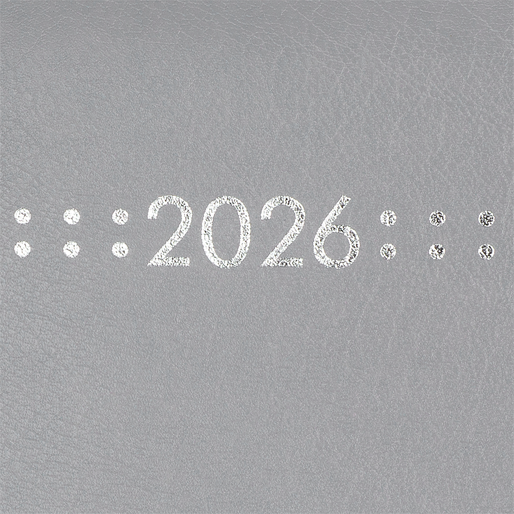 Жесткая обложка из бумвинила с поролоном ежедневника CLASSIC выполнена под фактуру натуральной кожи в классическом дизайне с яркими акцентами – тиснение года и декоративных элементов серебряной фольгой и тонированный серебром срез внутреннего блока.