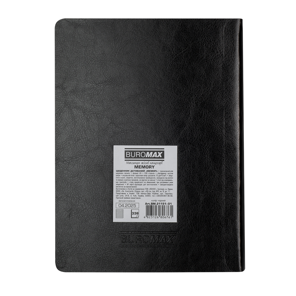 arrow_back_ios Щоденник датов. 2026 MEMORY, A5, чорний, штуч.шкіра