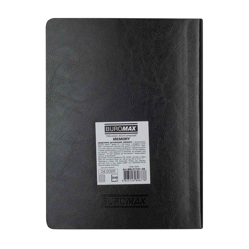Гнучка обкладинка з гладкої штучної шкіри щоденника MEMORY має 3D напис на лицьовій стороні, зроблений контрастним білим кольором. Гармонійно доповнює дизайн тонований в колір обкладинки зріз внутрішнього блоку.