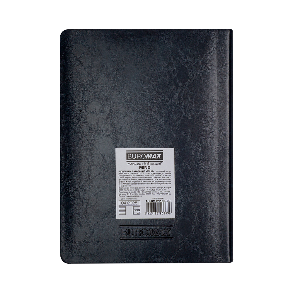 arrow_back_ios Щоденник датов. 2026 MIND, A5, синій, штуч.шкіра