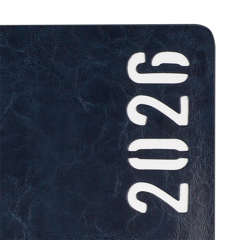 Гнучка обкладинка з гладкої штучної шкіри щоденника MIND має нанесення року на лицьовій стороні білим кольором з ефектом вирізання зі шкіри. Гармонійно доповнює дизайн тонований в колір обкладинки зріз внутрішнього блоку.