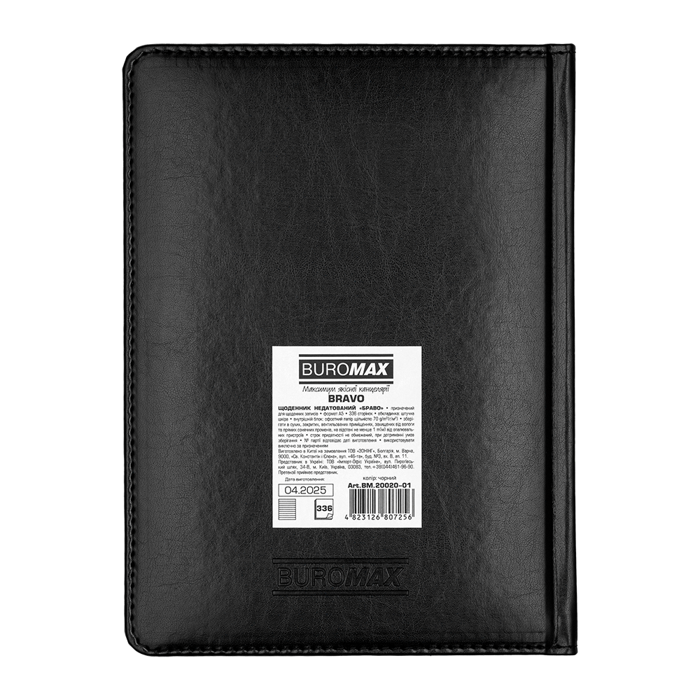 arrow_back_ios Щоденник недат. BRAVO, A5, чорний, штуч. шкіра/поролон, 336 стор