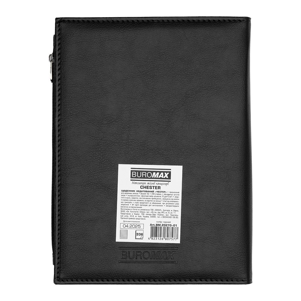 arrow_back_ios Щоденник недат. CHESTER, A5, чорний, штуч.шкіра/поролон, 336 стор