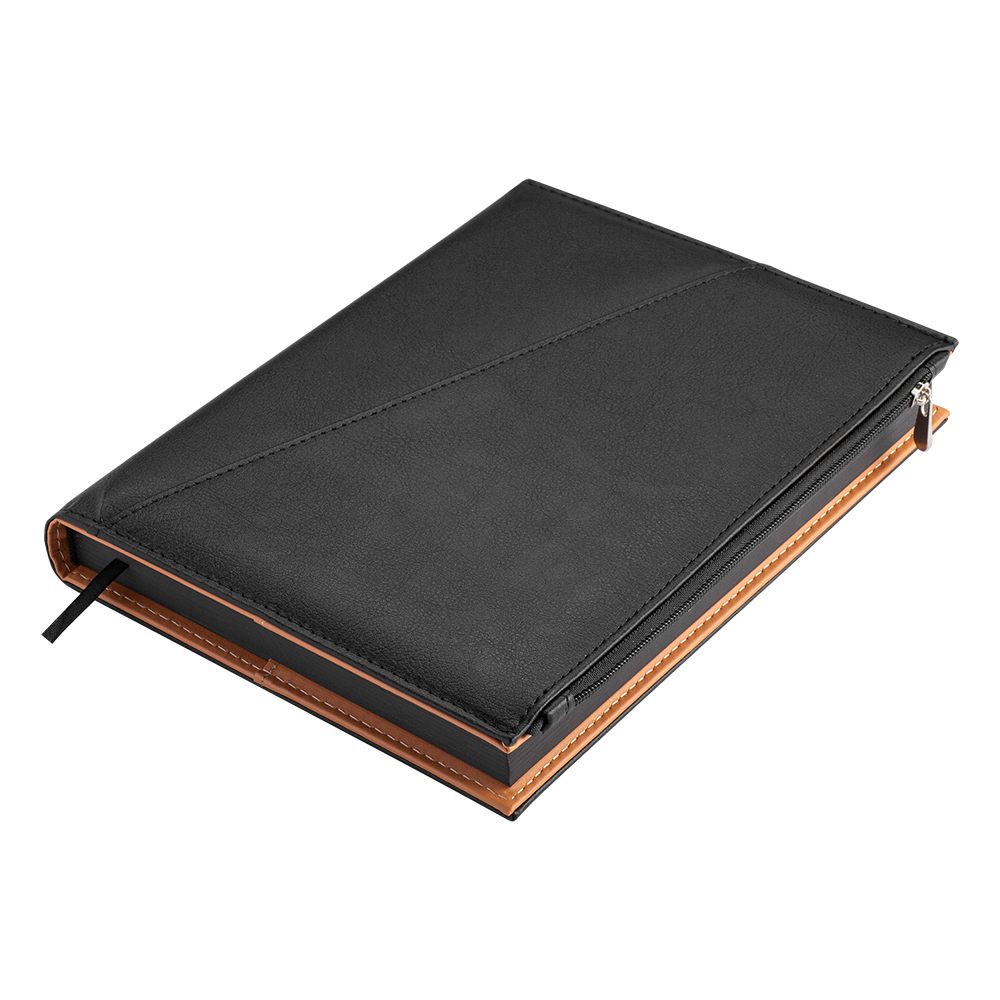 Съемная обложка – органайзер ежедневника CHESTER изготовлена из искусственной кожи с поролоном и имеет фактуру натуральной кожи. Обложка имеет глубокий карман на молнии вдоль края лицевой стороны обложки, а также глубокий открытый карман для заметок, визиток, карточек, бумажек и мелочей. Гармонично дополняют дизайн декоративные швы по периметру обложки и краю кармана.