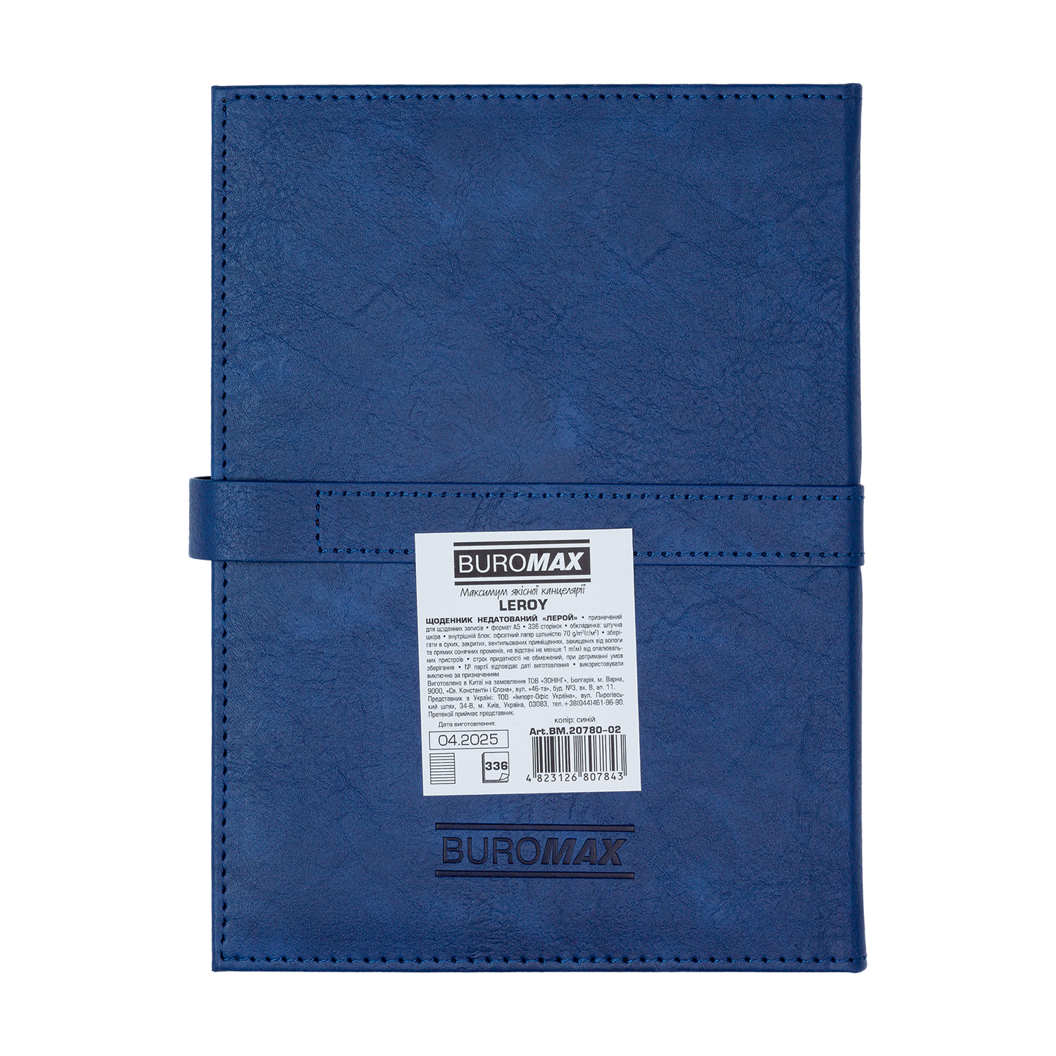 arrow_back_ios Щоденник недат. LEROY, A5, синій, штуч.шкіра, 336 стор