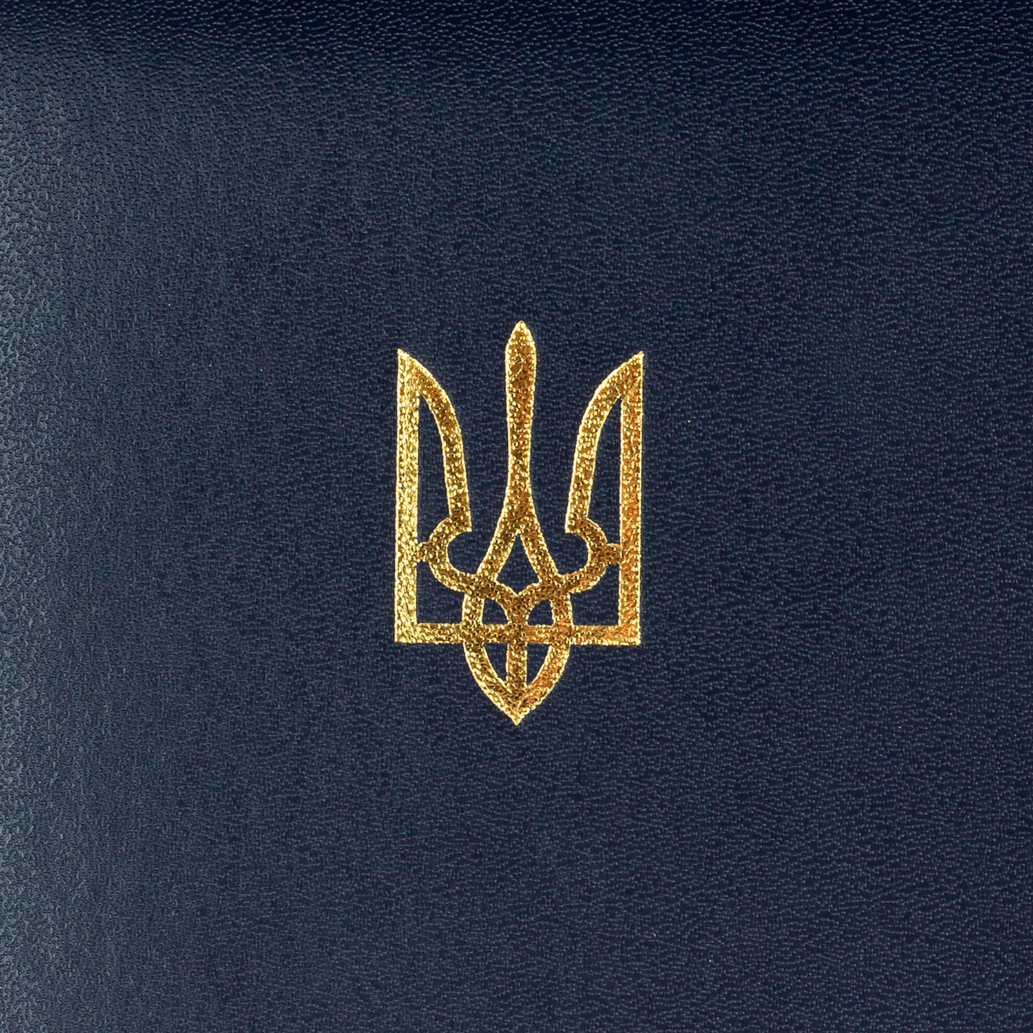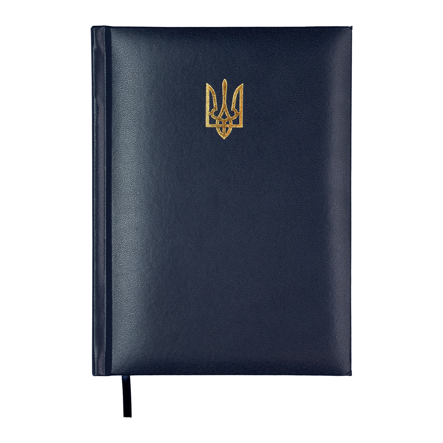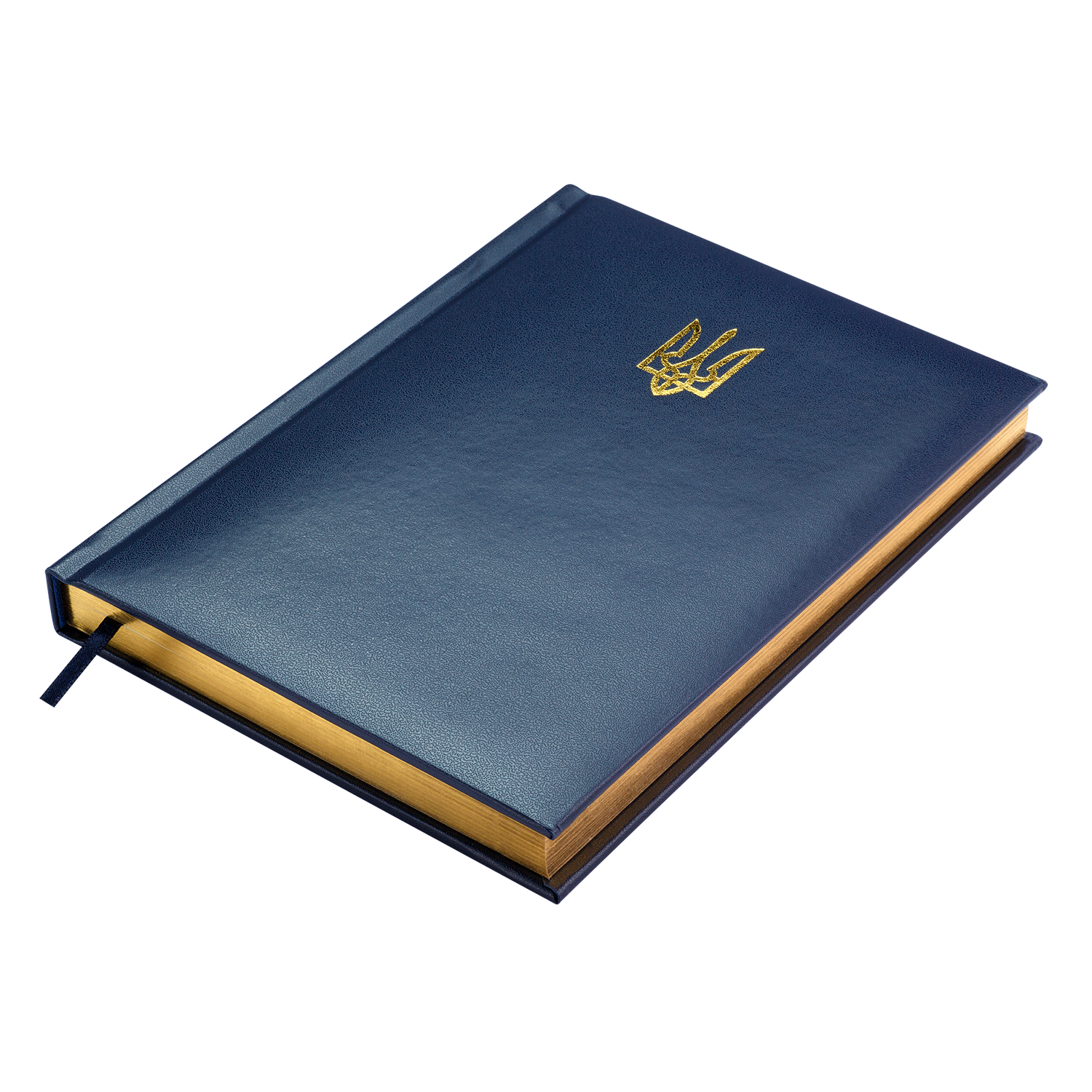 Жорстка обкладинка з бумвінілу з поролоном щоденника POWERFUL має поверхню, що візуально імітує тканину, виконана у патріотичному мотивуючому дизайні з яскравими акцентами - тиснення Державного Герба та напису срібною фольгою. Гармонійно доповнює дизайн тонований сріблом зріз внутрішнього блоку.