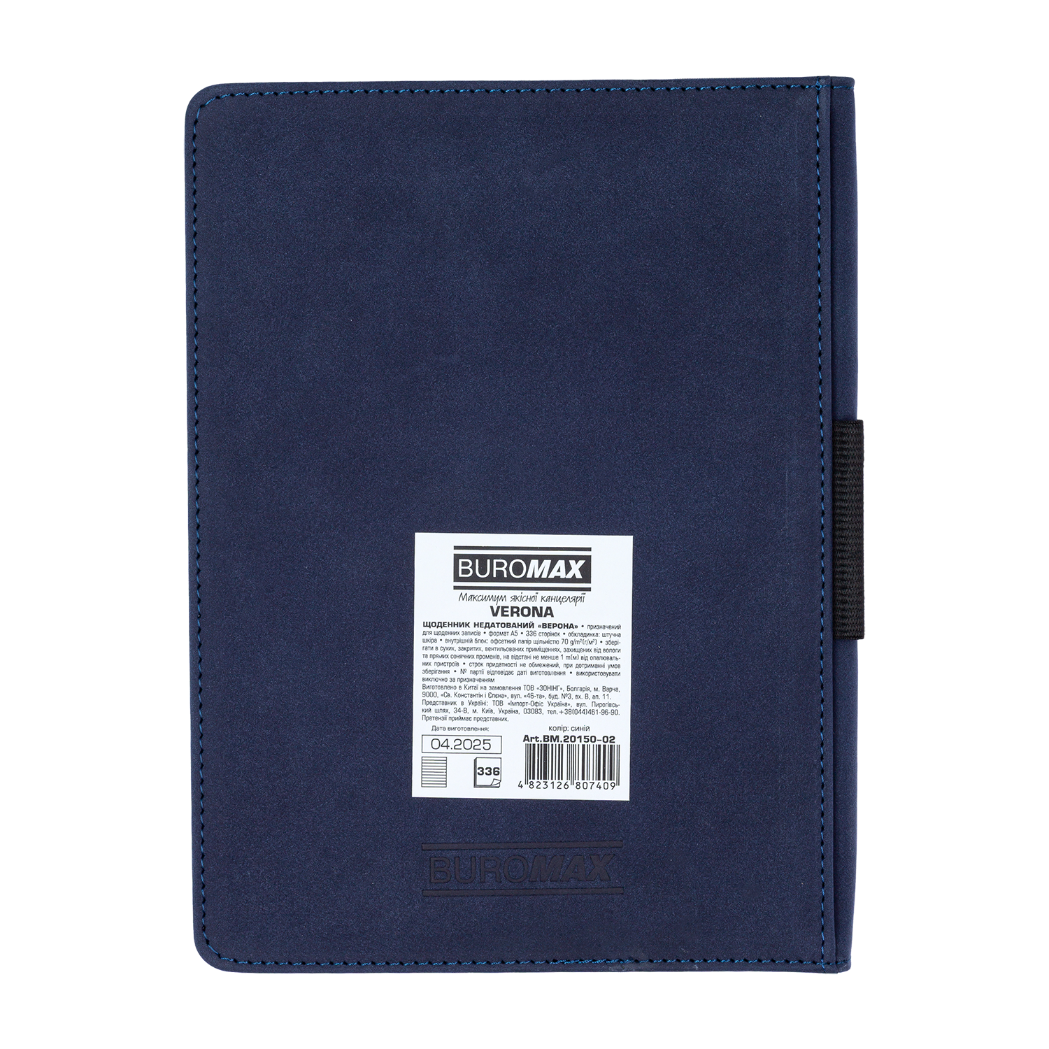 arrow_back_ios Щоденник недат. VERONA, A5, синій, штуч. шкіра/поролон, 336 стор