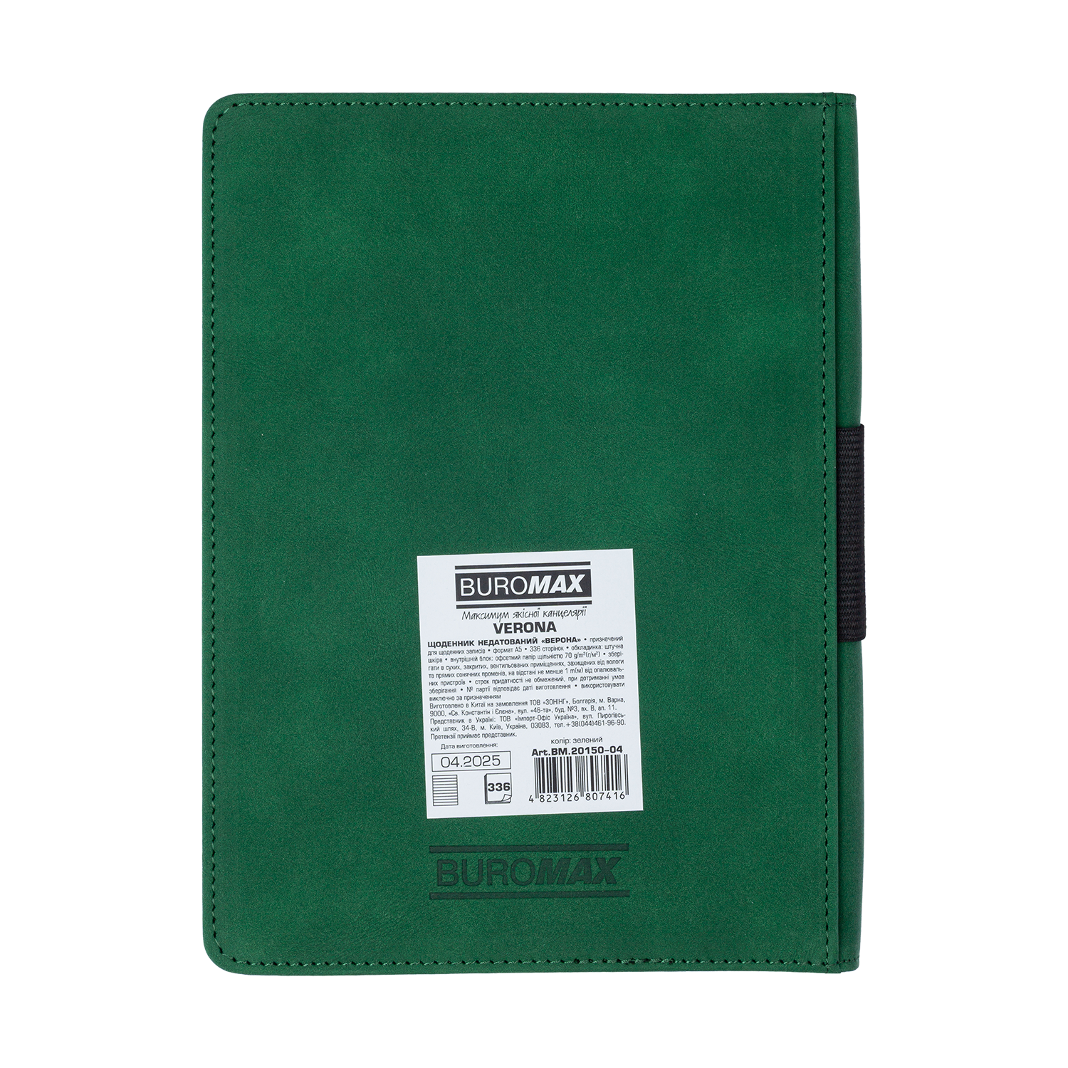 arrow_back_ios Щоденник недат. VERONA, A5, зелений, штуч. шкіра/поролон, 336 стор