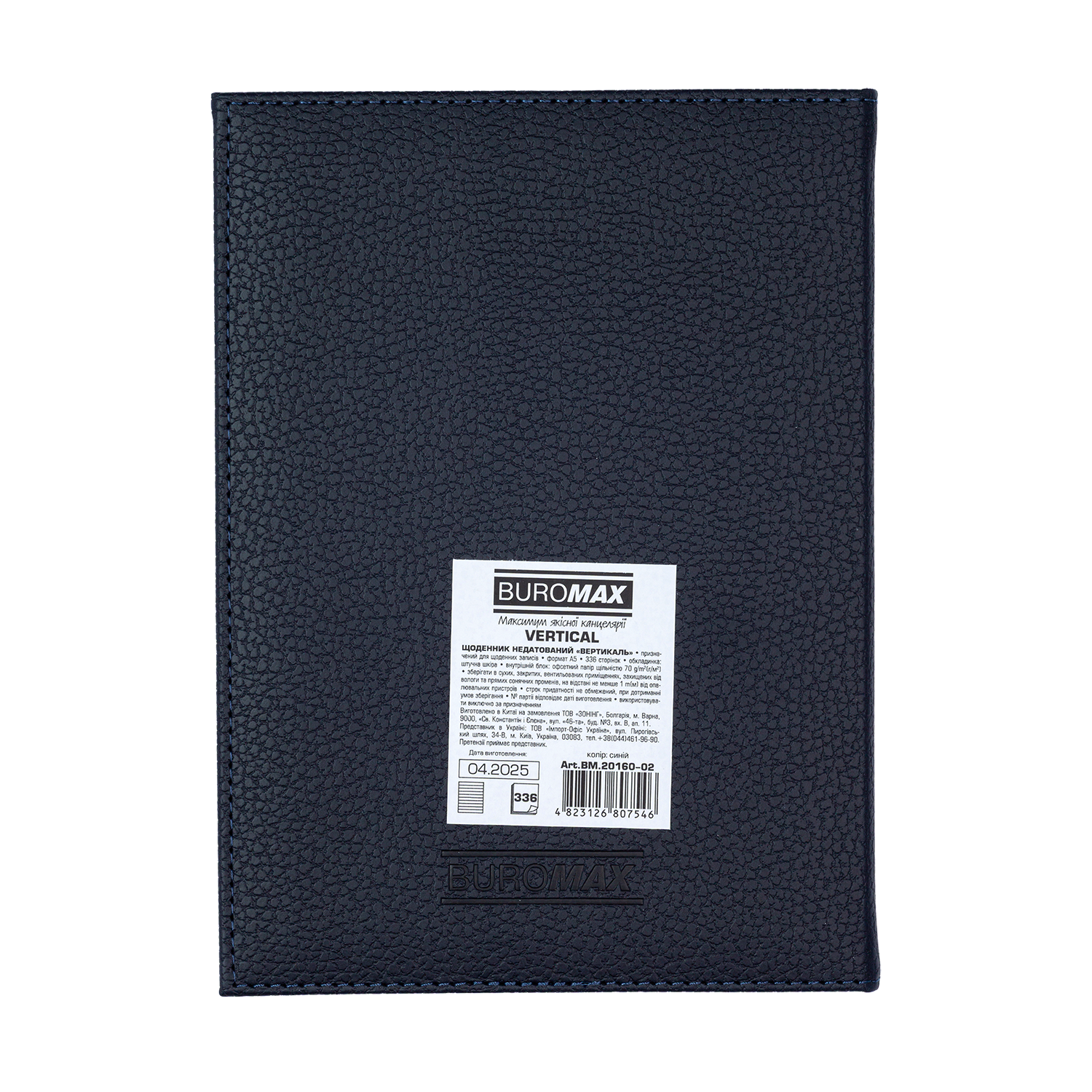 arrow_back_ios Щоденник недат. VERTICAL, A5, синій, штуч.шкіра/поролон, 336 стор