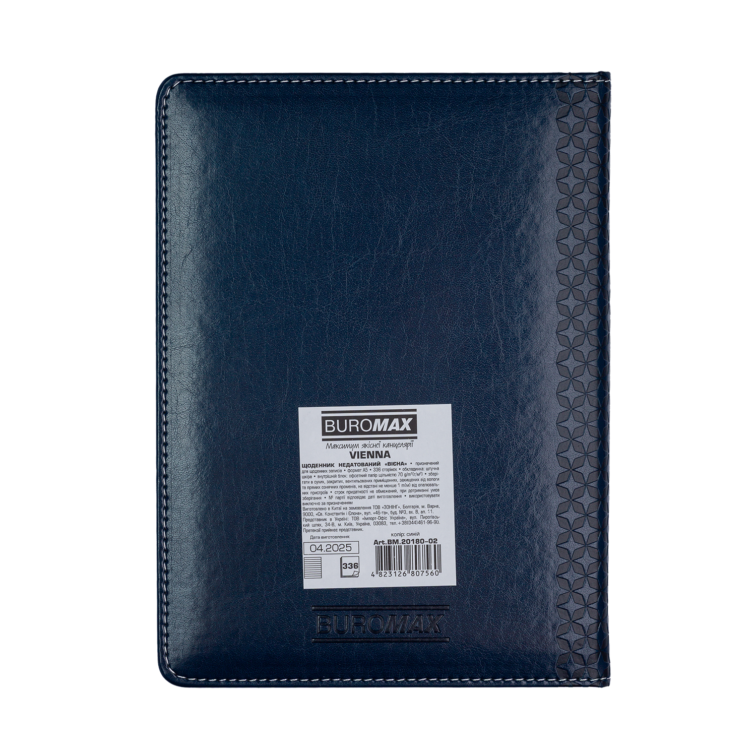 arrow_back_ios Щоденник недат. VIENNA, A5, синій, штуч.шкіра/поролон, 336 стор