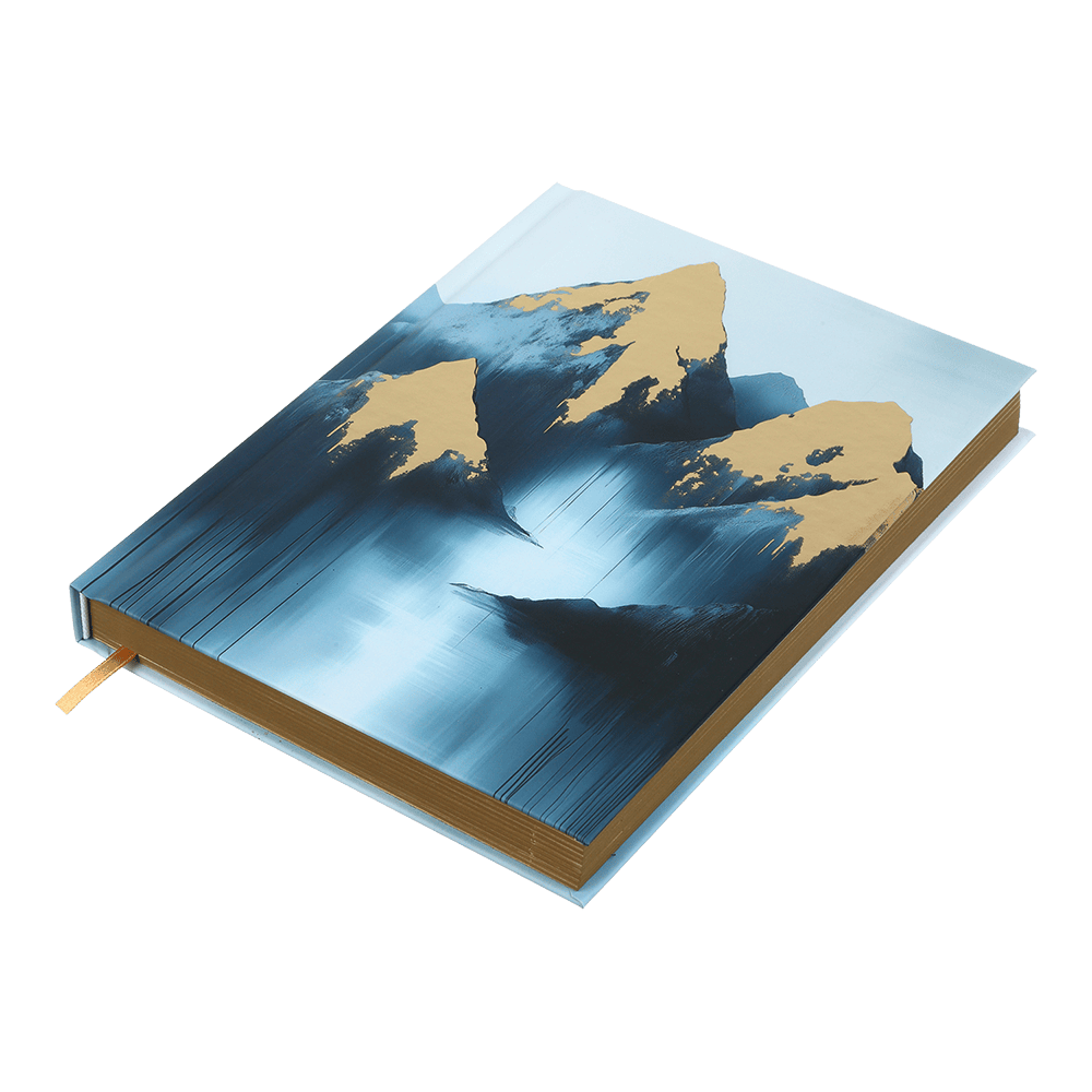 - Повнокольорова обкладинка з матовою ламінацією Soft Touch та поліграфічними ефектами: вибіркове тиснення золотою фольгою та УФ лак