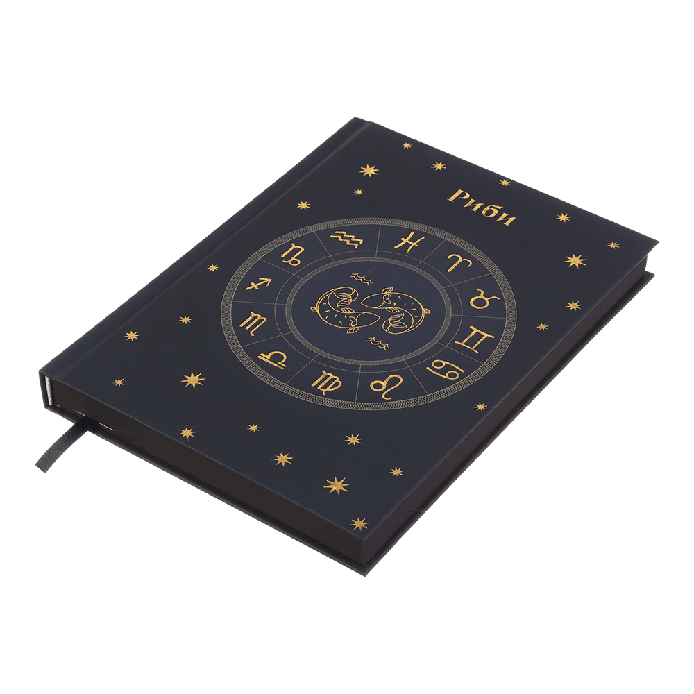 Жорстка поліграфічна обкладинка щоденника ZODIAK має дизайн в астрологічному стилі зі знаком зодіаку "Риби". Гармонійно доповнює та надає завершеності дизайну тонований зріз внутрішнього блоку.