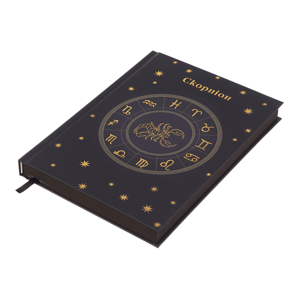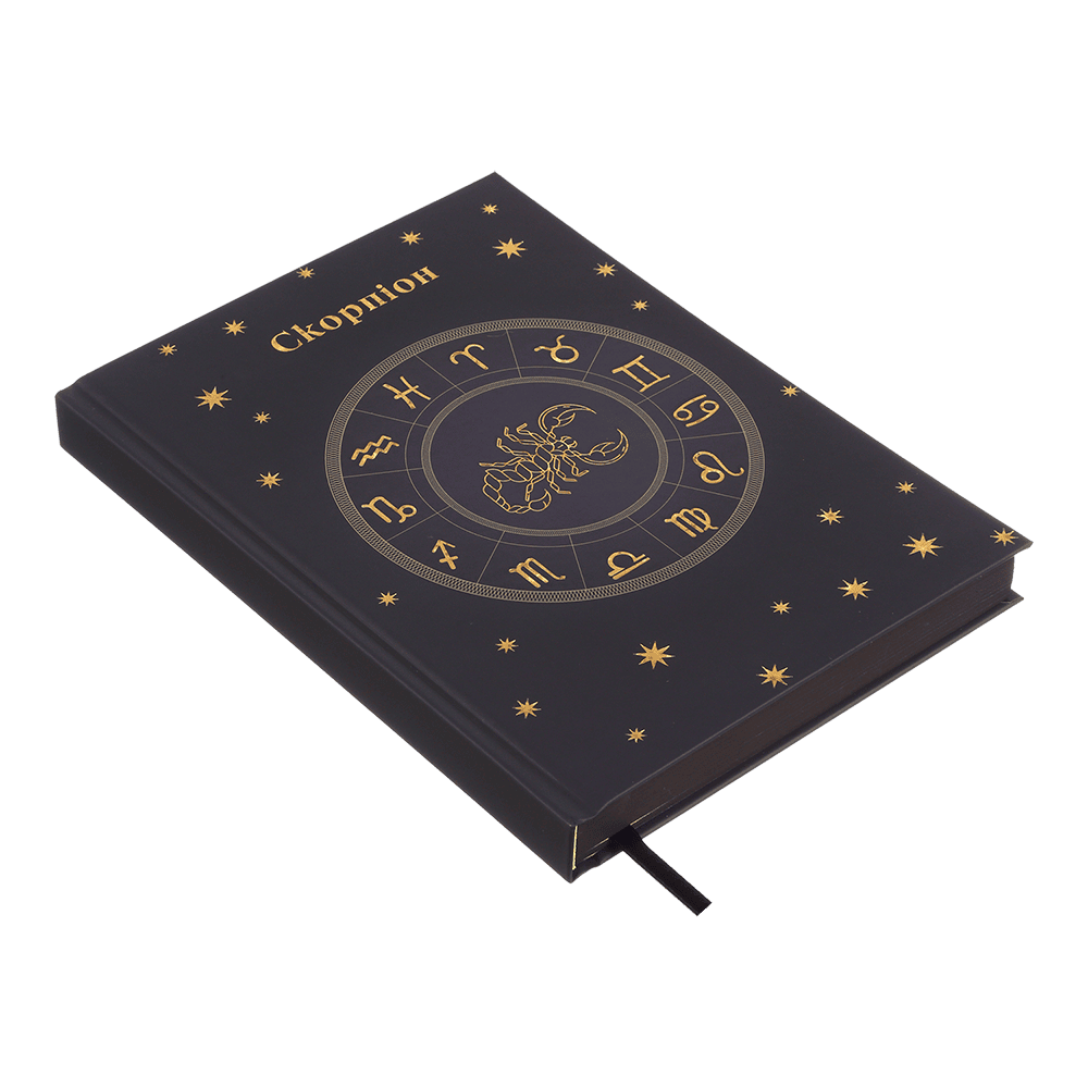 Жорстка поліграфічна обкладинка щоденника ZODIAK має дизайн в астрологічному стилі зі знаком зодіаку "Скорпіон". Гармонійно доповнює та надає завершеності дизайну тонований зріз внутрішнього блоку.