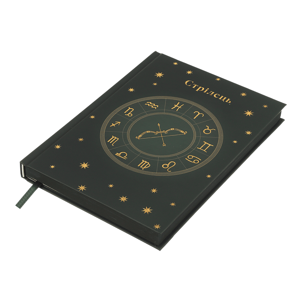 Жорстка поліграфічна обкладинка щоденника ZODIAK має дизайн в астрологічному стилі зі знаком зодіаку "Стрілець". Гармонійно доповнює та надає завершеності дизайну тонований зріз внутрішнього блоку.