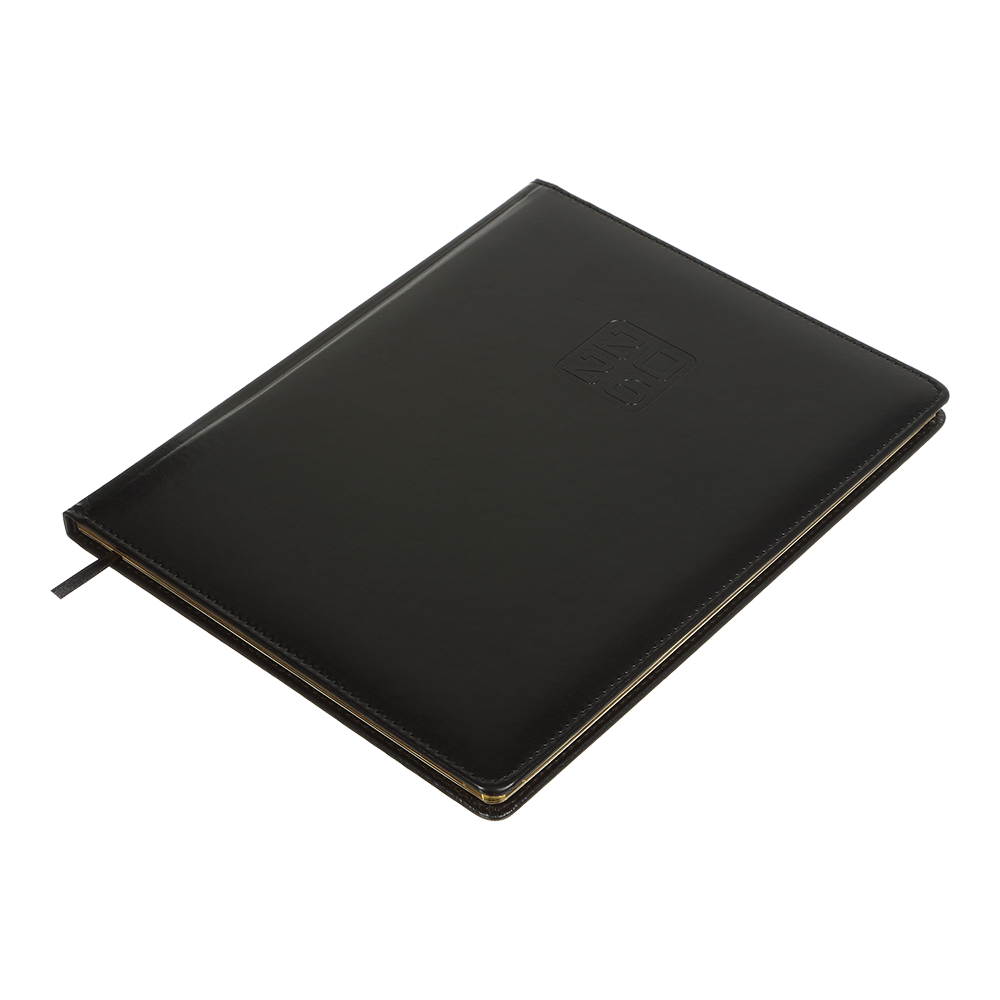 Жорстка обкладинка щотижневика BRAVO виготовлена з гладкої штучної шкіри, з поролоном. На лицьовій стороні - тиснення року сліпим методом. Тонування зрізу золотом додає вишуканий акцент. Класичний та стриманий дизайн стане відмінним доповненням корпоративного стилю компанії. Великий формат дозволяє не тільки планувати, але й робити змістовні нотатки та записи.
