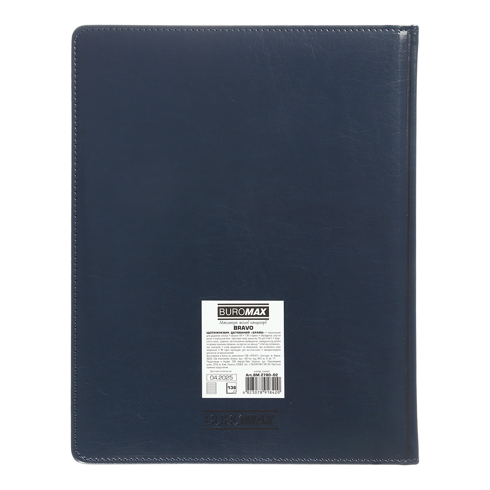 Жорстка обкладинка щотижневика BRAVO виготовлена з гладкої штучної шкіри, з поролоном. На лицьовій стороні - тиснення року сліпим методом. Тонування зрізу золотом додає вишуканий акцент. Класичний та стриманий дизайн стане відмінним доповненням корпоративного стилю компанії. Великий формат дозволяє не тільки планувати, але й робити змістовні нотатки та записи.
