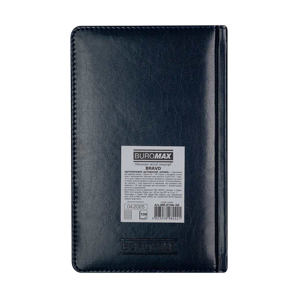 arrow_back_ios Щотижневик датов. 2026 BRAVO, A5, синій, штуч. шкіра/поролон