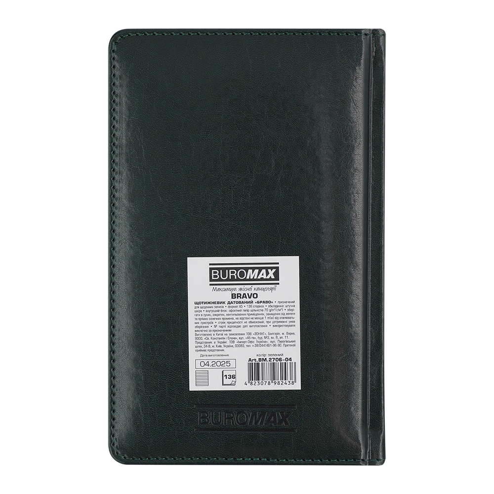arrow_back_ios Щотижневик датов. 2026 BRAVO, A5, зелений, штуч. шкіра/поролон
