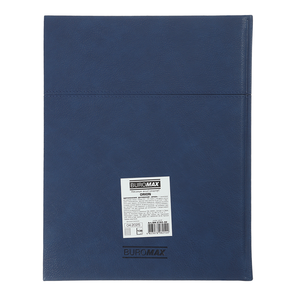 Жорстка обкладинка зі штучної шкіри щотижневика ORION водночас оригінальна та лаконічна. Фактура обкладинки імітує фактуру натуральної шкіри. Гармонійно доповнює дизайн обкладинки сліпе тиснення року на лицьовій стороні та декоративний шов по периметру та поперек обкладинки. Великий формат дозволяє не тільки планувати, але й робити змістовні нотатки та записи.