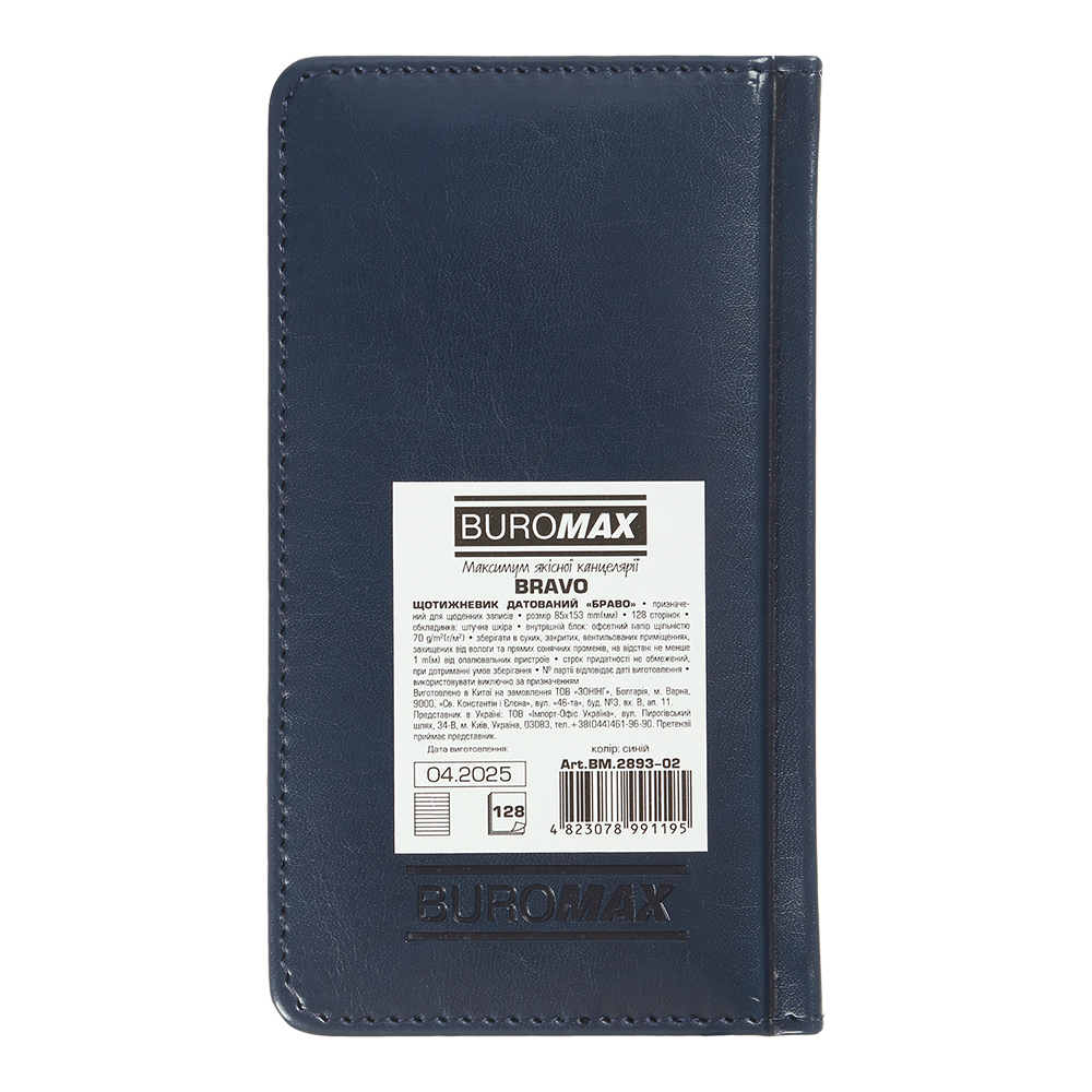 arrow_back_ios Щотижневик датов. 2026 кишеньк. BRAVO, 85*153, синій, штуч. шкіра/поролон