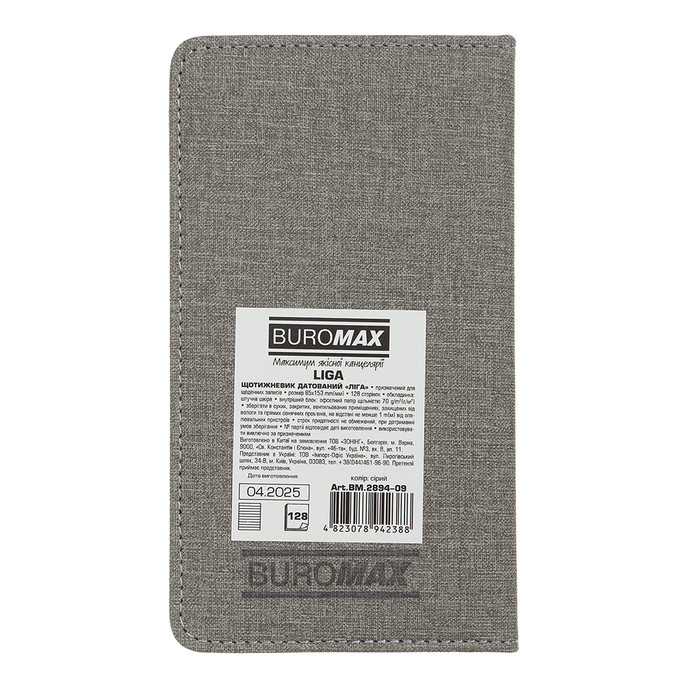 arrow_back_ios Щотижневик датов. 2026 кишеньк. LIGA, 85*153, сірий, штуч. шкіра/поролон