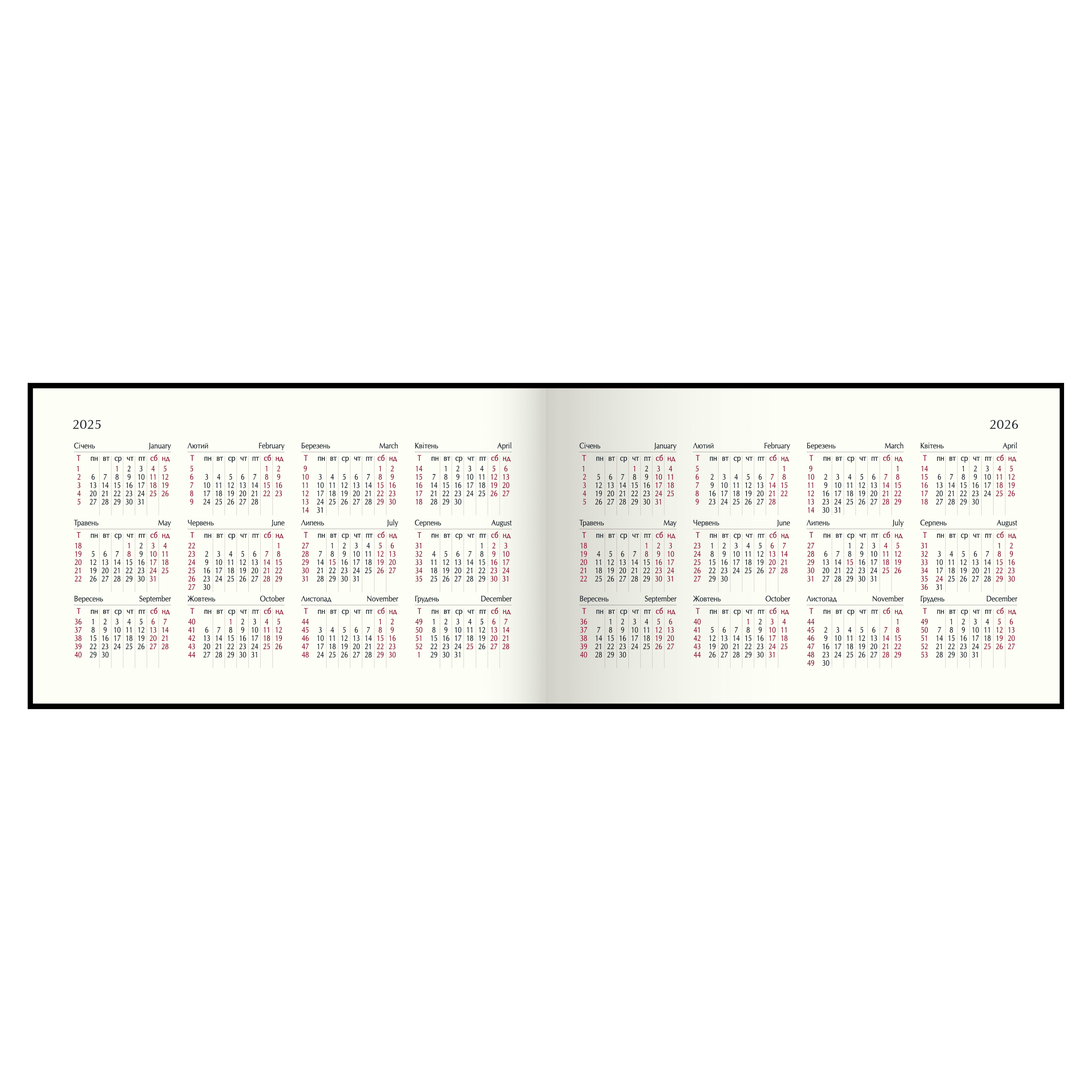 Тверда обкладинка зі штучної шкіри щотижневика ORION водночас оригінальна та лаконічна. Фактура обкладинки імітує фактуру натуральної шкіри. Гармонійно доповнює дизайн обкладинки сліпе тиснення року на лицьовій стороні, декоративний шов по периметру і поперек обкладинки та тонування зрізу внутрішнього блоку в колір обкладинки. Кишеньковий розмір щотижневика робить його постійним супутником свого власника, він не займе багато місця навіть у маленькій сумці, вміститься в кишені і завжди буде під рукою.