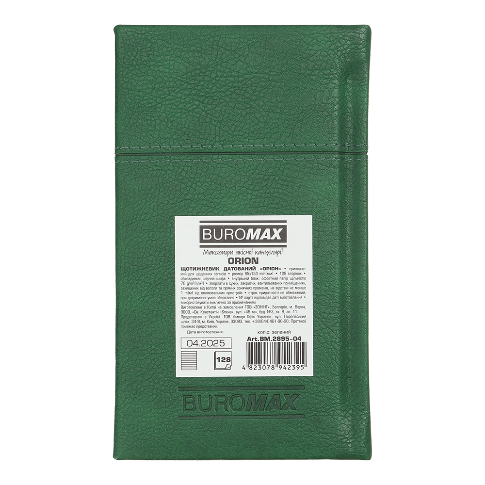 arrow_back_ios Щотижневик датов. 2026 кишеньк. ORION, 85*153, зелений, штуч. шкіра/поролон
