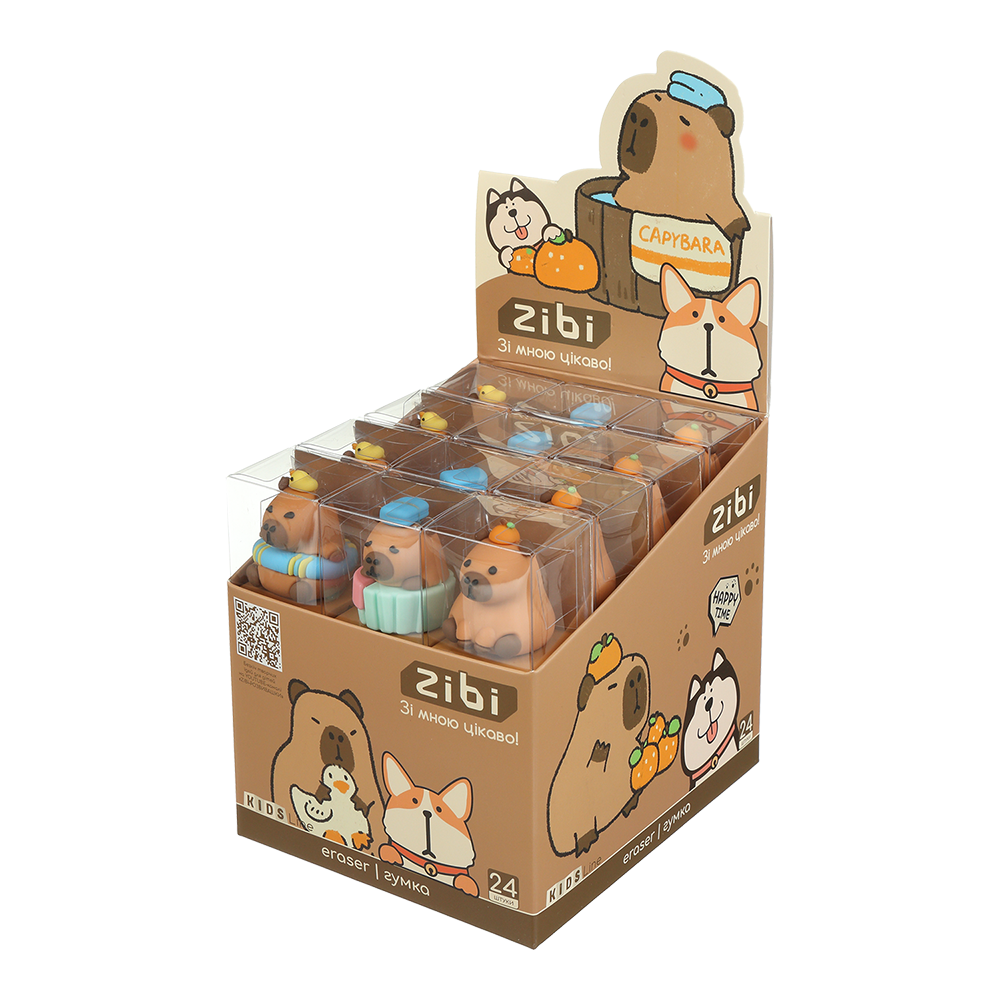 - Групова упаковка: картонний шоу-бокс містить 24 гумки в 6-ти дизайнах асорті