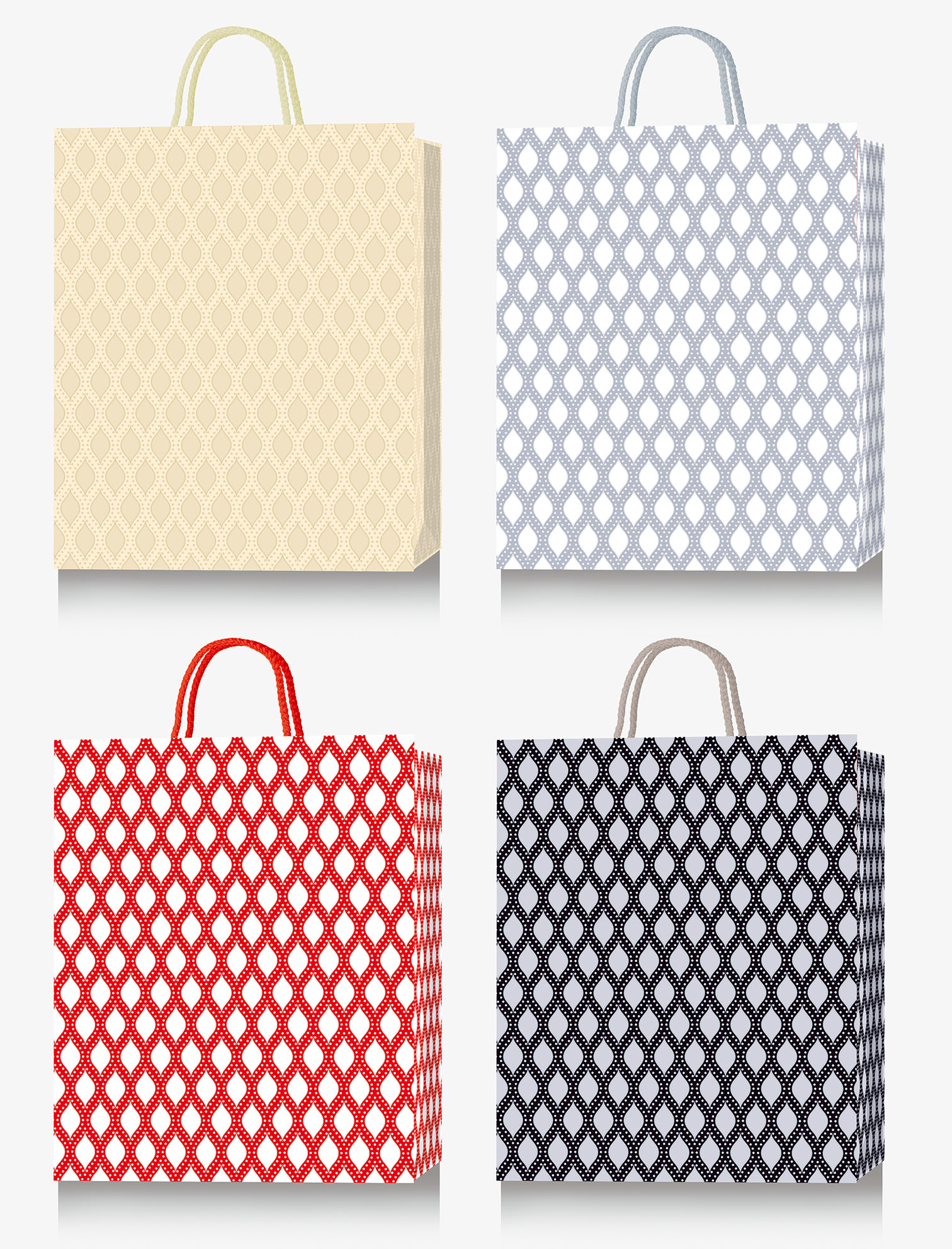 - Текстильні ручки з кольорового шнура, мають естетичний вигляд, виконані під колір дизайну пакету