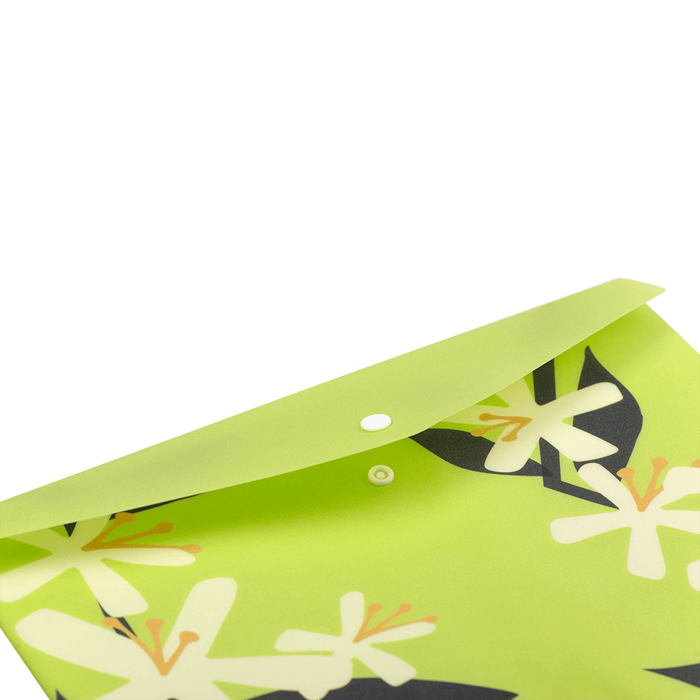 arrow_back_ios Папка-конверт А4 на кнопці, PLUMERIA ARABESKI, напівпрозора, салатова