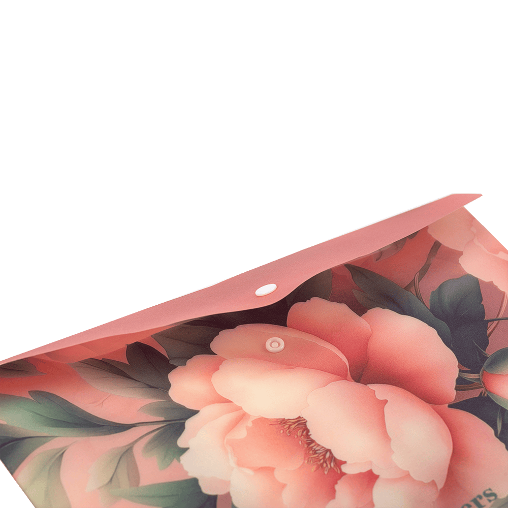 arrow_back_ios Папка-конверт А4 на кнопці, PEONY ARABESKI, напівпрозора, рожева