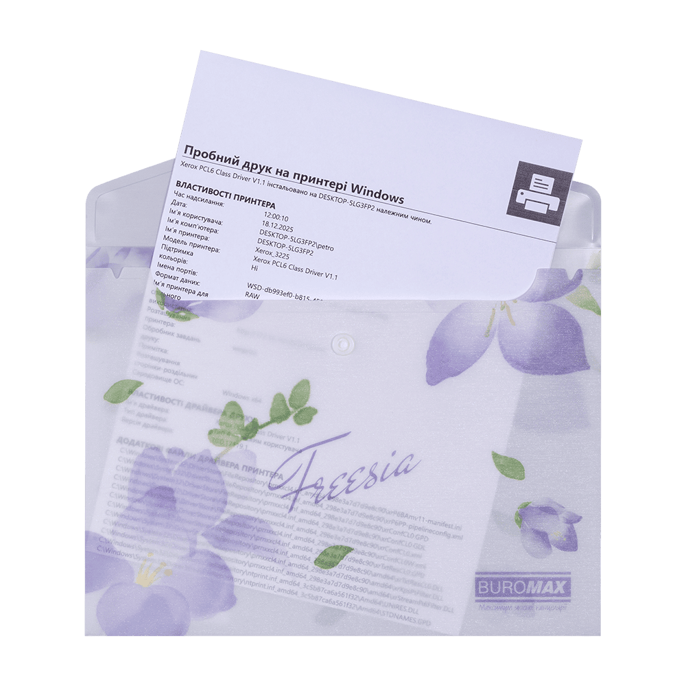 arrow_back_ios Папка-конверт А5 на кнопці, FREESIA ARABESKI, напівпрозора, бузкова