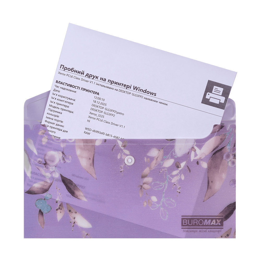 - закривається клапаном за допомогою пластикової кнопки, що забезпечує надійне збереження паперів та легкий доступ до них