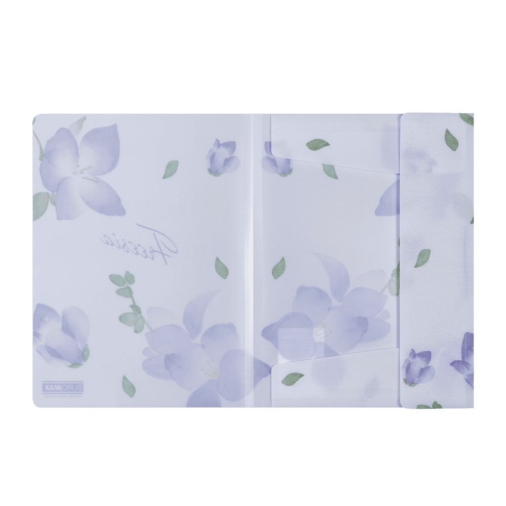 Папка на гумках серії ARABESKI від BUROMAX - це вишуканий і функціональний аксесуар для зберігання і транспортування паперів! Така папка захистить документи, малюнки, ескізи, посібники, зошити, брошури та багато інших паперових виробів від заминання, намокання чи забруднення. Оригінальний квітковий дизайн папки неодмінно буде приваблювати, радувати око власника та надихати!
