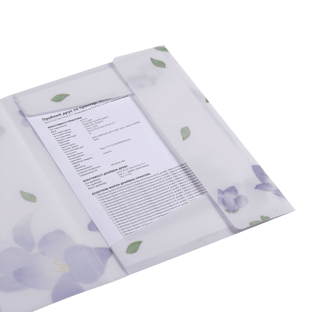 - матеріал: матовий напівпрозорий пластик товщиною 400 мкм