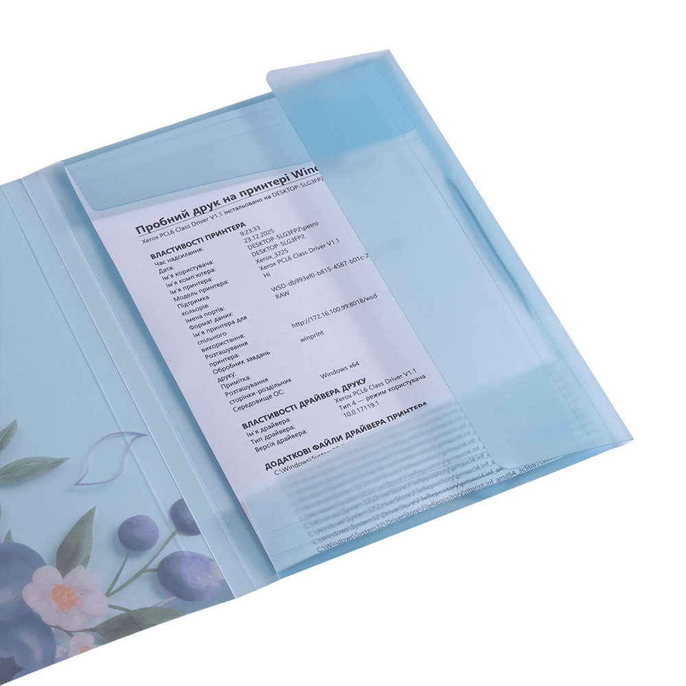 - матеріал: матовий напівпрозорий пластик товщиною 400 мкм