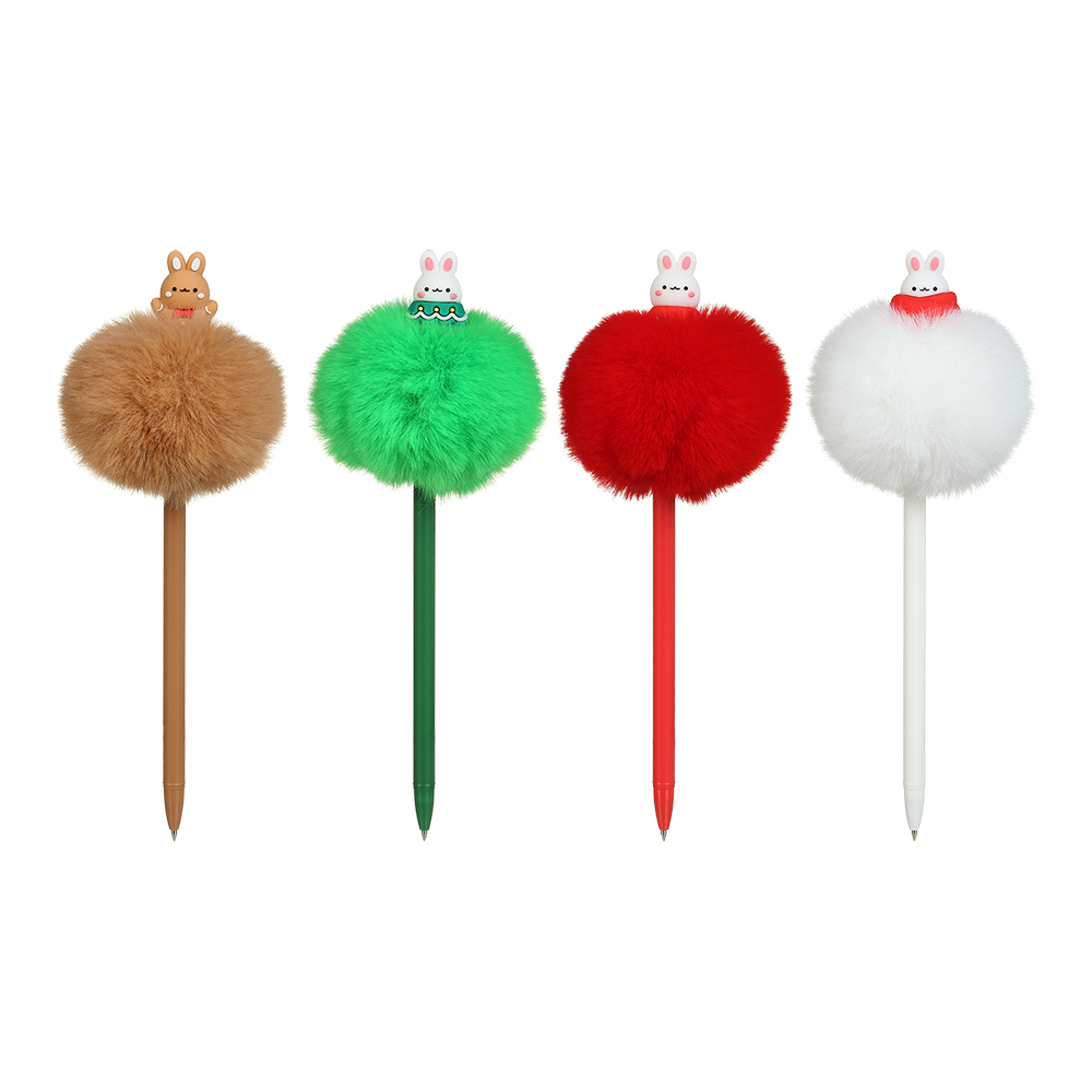 Кулькова ручка з помпоном FLUFFY BANNY від ZiBi – оригінальний та цікавий подаруночок до зимових свят і інструмент для письма. Дизайнерське рішення у вигляді великого помпону та фігурки-декору зайчика на корпусі, виконаних у різдвяно-новорічних мотивах та кольорах, робить ці ручки улюбленцями школярів, студентів, а також творчих і креативних людей для створення святкового настрою, записів, сюрпризів, ігор з використанням інструментів для письма.