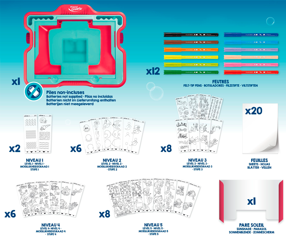 Світлова дошка Lumi - це світлопроекційний планшет для навчання малюванню. Копіюйте зображення, комбінуйте їх та створюйте все нові й нові дивовижні малюнки зі світу русалок разом з MAPED!