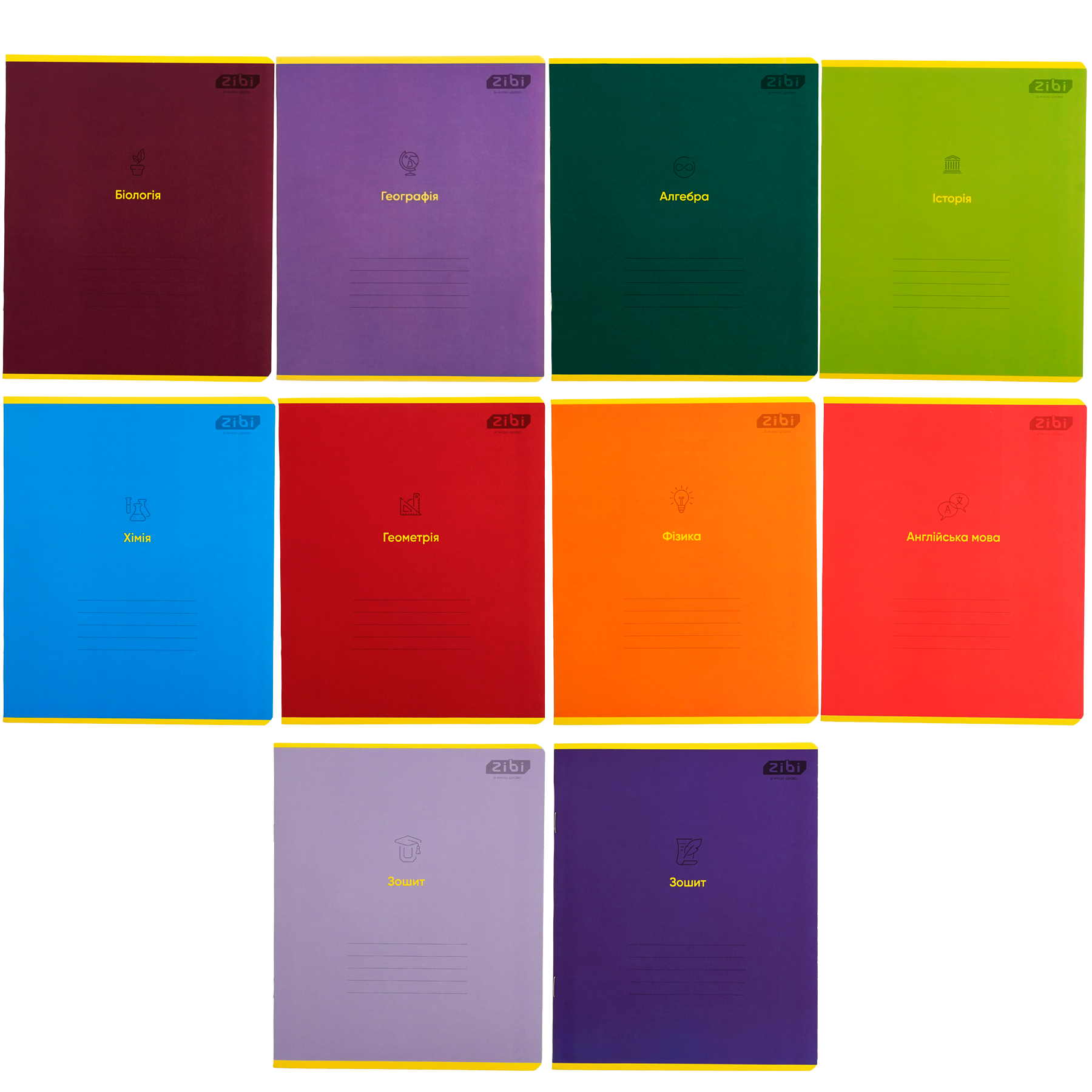 Набір містить 10 зошитів з 8 предметів: алгебра – 1 шт, геометрія – 1 шт, фізика – 1 шт, хімія – 1 шт, біологія – 1 шт, географія – 1 шт, історія України – 1 шт, англійська мова – 1 шт, зошит шкільний (без довідкової інформації) - 2 шт.