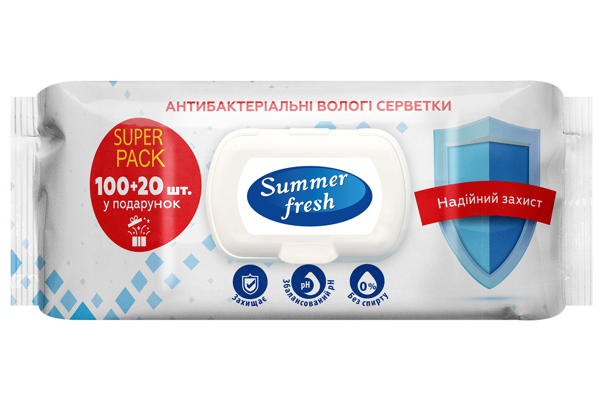 arrow_back_ios Серветки вологі антибактеріальні, 120шт., Summer Fresh