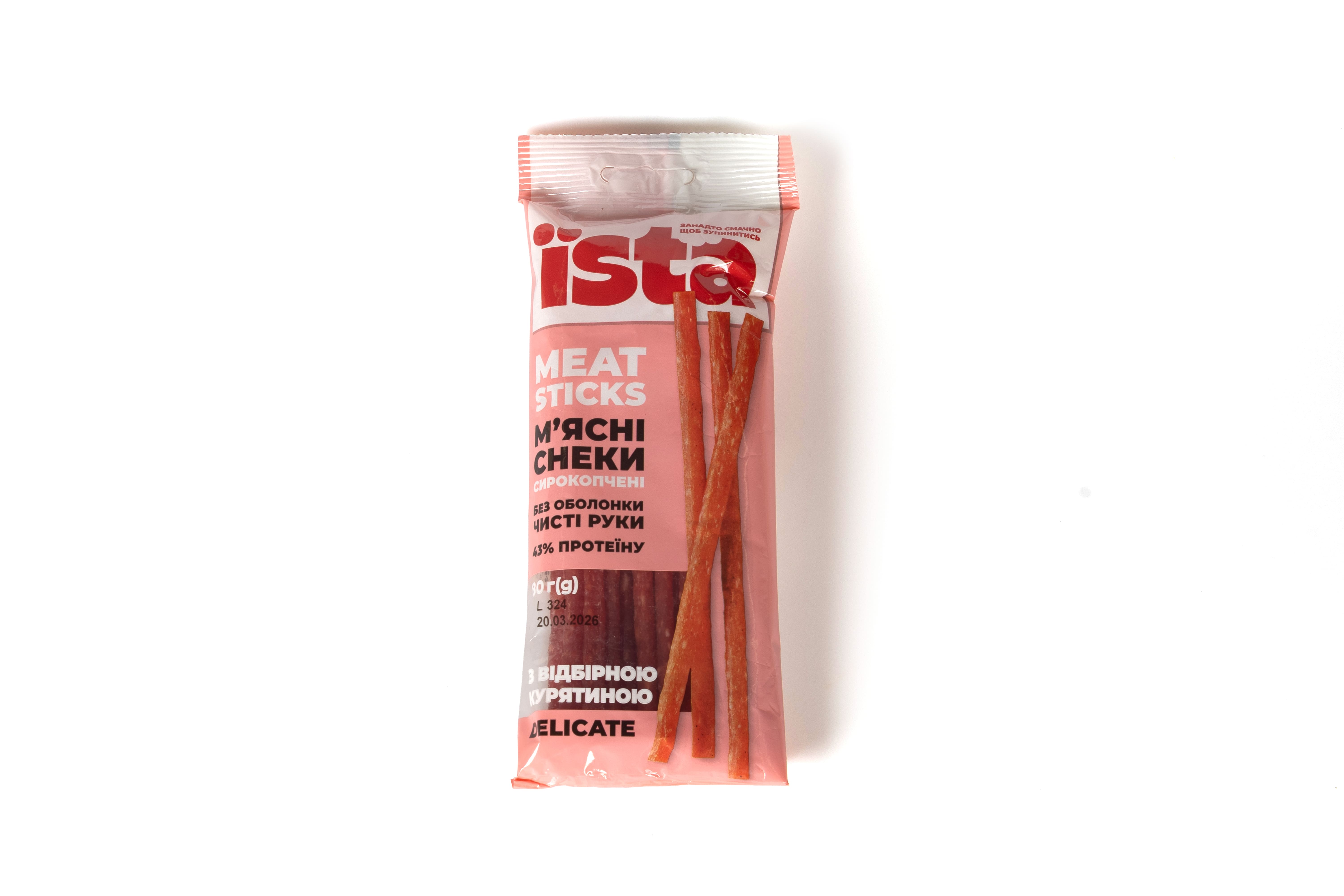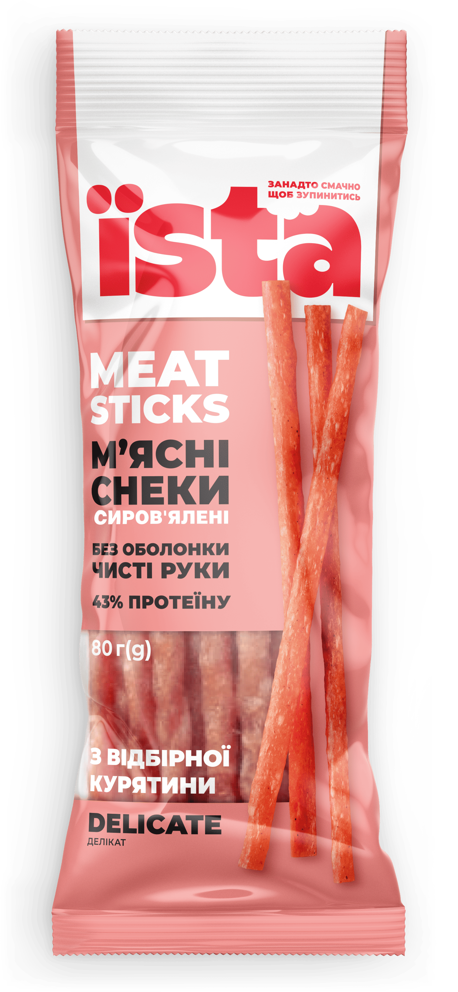 arrow_back_ios Снеки м'ясні сирокопчені, 80г, Delicat, ТМ ЇSTA