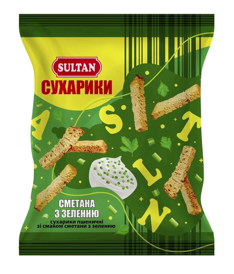 Сухарики зі смаком сметана з зеленню 90 грам ТМ "Sultan"