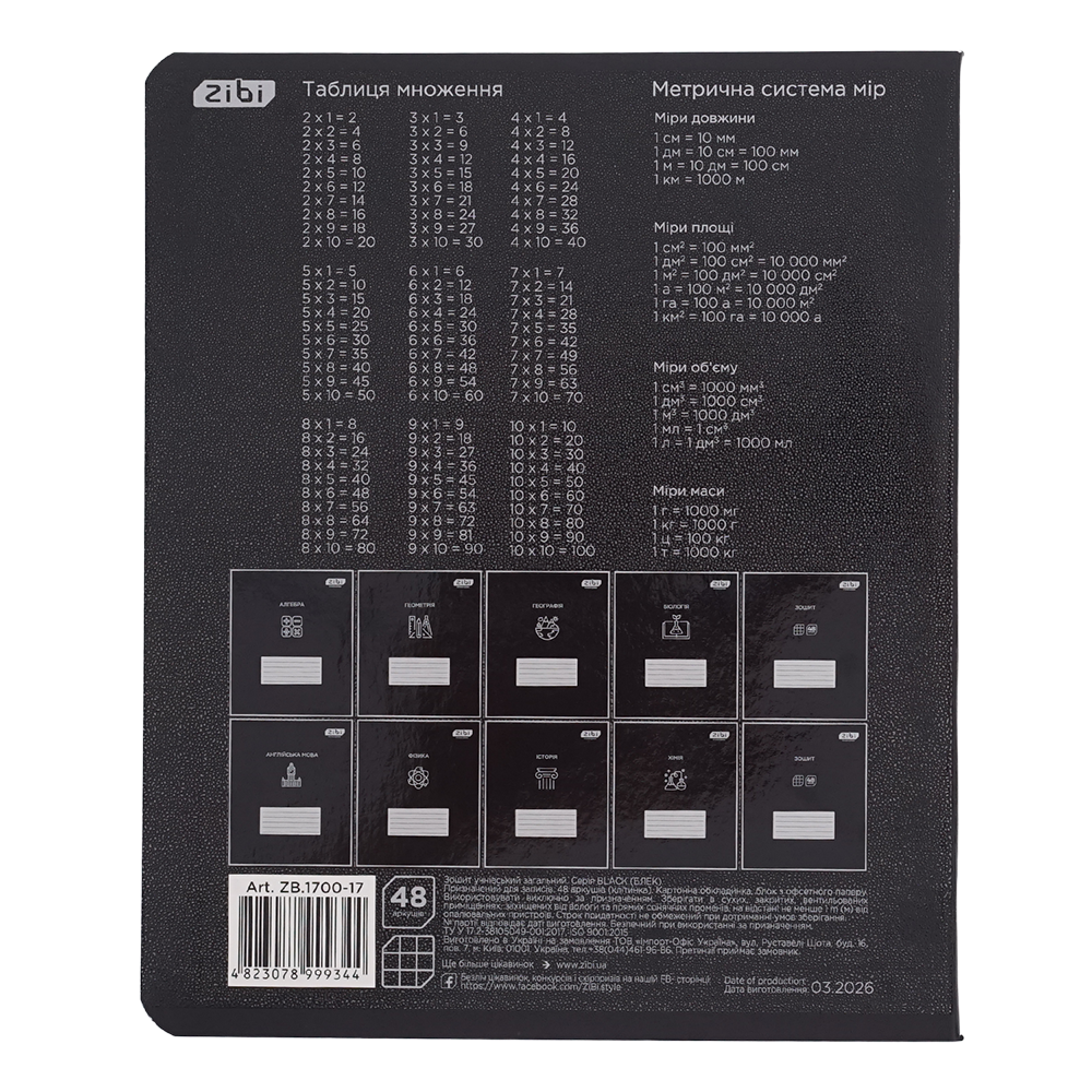 Зошит учнівський загальний серії "BLACK" з англійської мови від ZiBi з креативним сучасним дизайном обкладинки та блоком корисної довідкової інформації чудово підходить для виконання класних та домашніх робіт.
