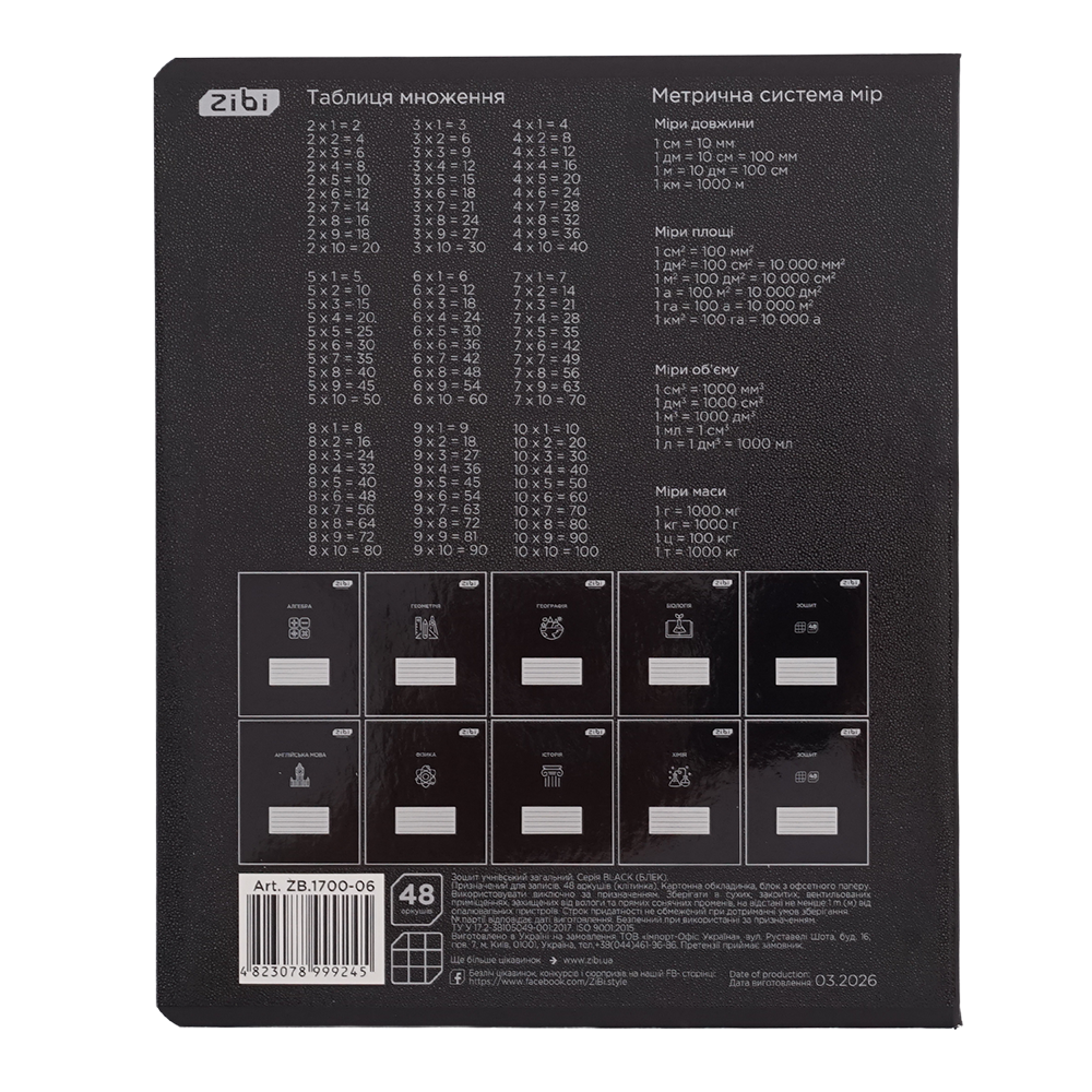 Зошит учнівський загальний серії "BLACK" з географії від ZiBi з креативним сучасним дизайном обкладинки та блоком корисної довідкової інформації чудово підходить для виконання класних та домашніх робіт.