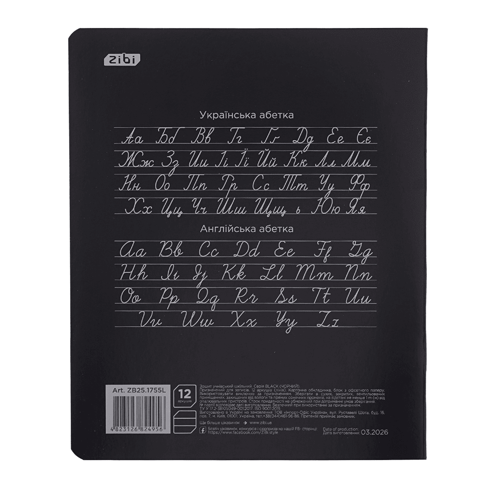 Зошит учнівський шкільний серії BLACK від ZiBi - має креативний і лаконічний дизайн, чудово підходить для навчання в школі, виконання класних, домашніх та контрольних робіт, чорнетки, тощо.