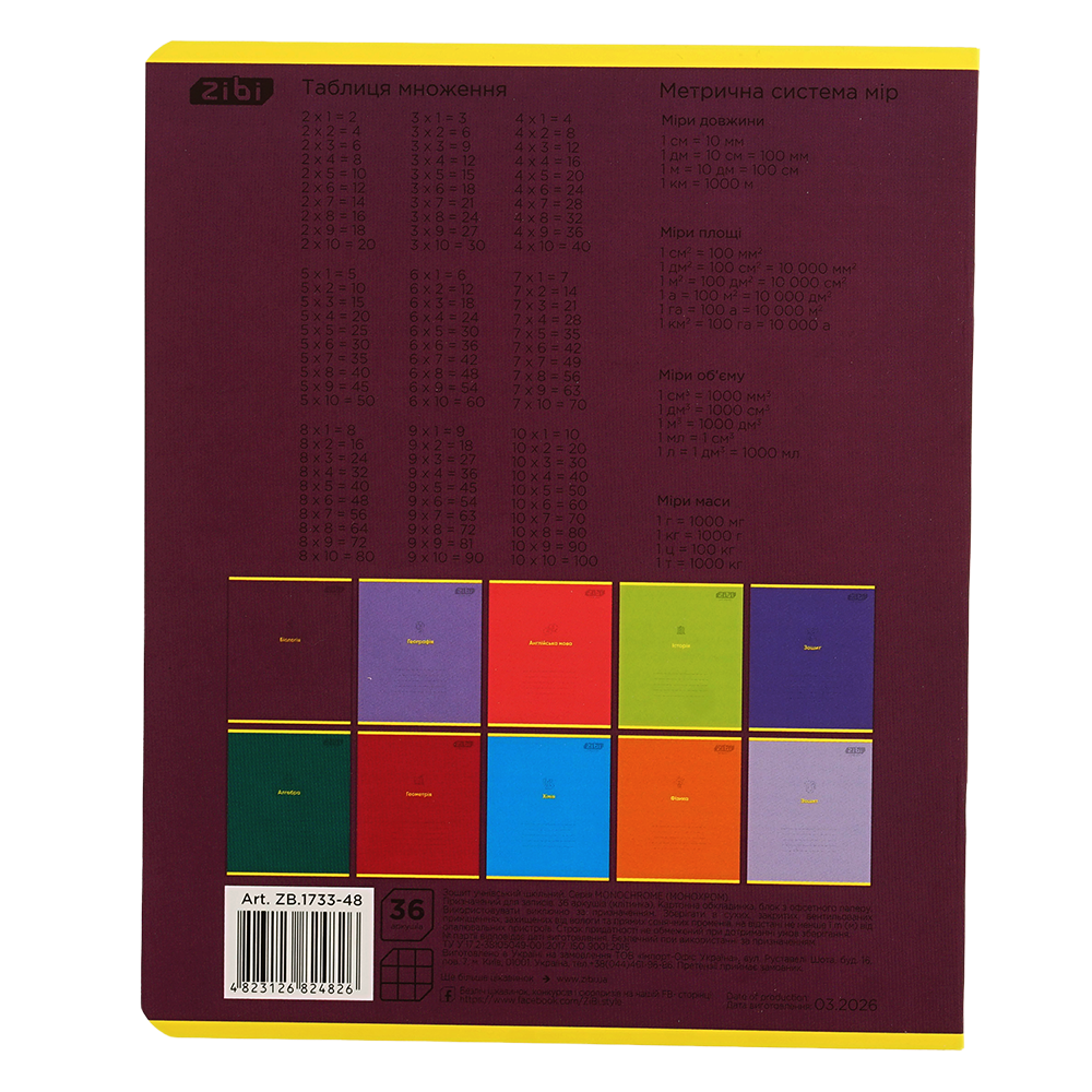 Зошит учнівський шкільний серії "MONOCHROME" з біології від Zibi з лаконічним стильним дизайном обкладинки та блоком корисної довідкової інформації чудово підходить для виконання класних та домашніх робіт.