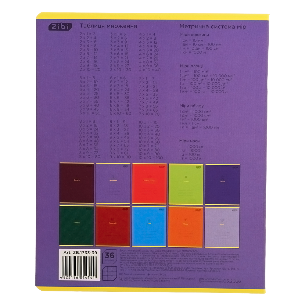 Зошит учнівський шкільний серії "MONOCHROME" з географії від Zibi з лаконічним стильним дизайном обкладинки та блоком корисної довідкової інформації чудово підходить для виконання класних та домашніх робіт.