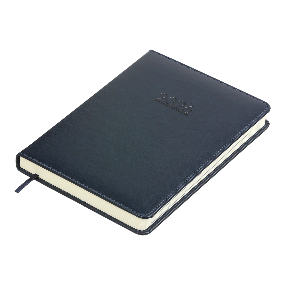 arrow_back_ios Щоденник датов. 2026 PRIME, A5, темно-синій, штуч. шкіра/поролон