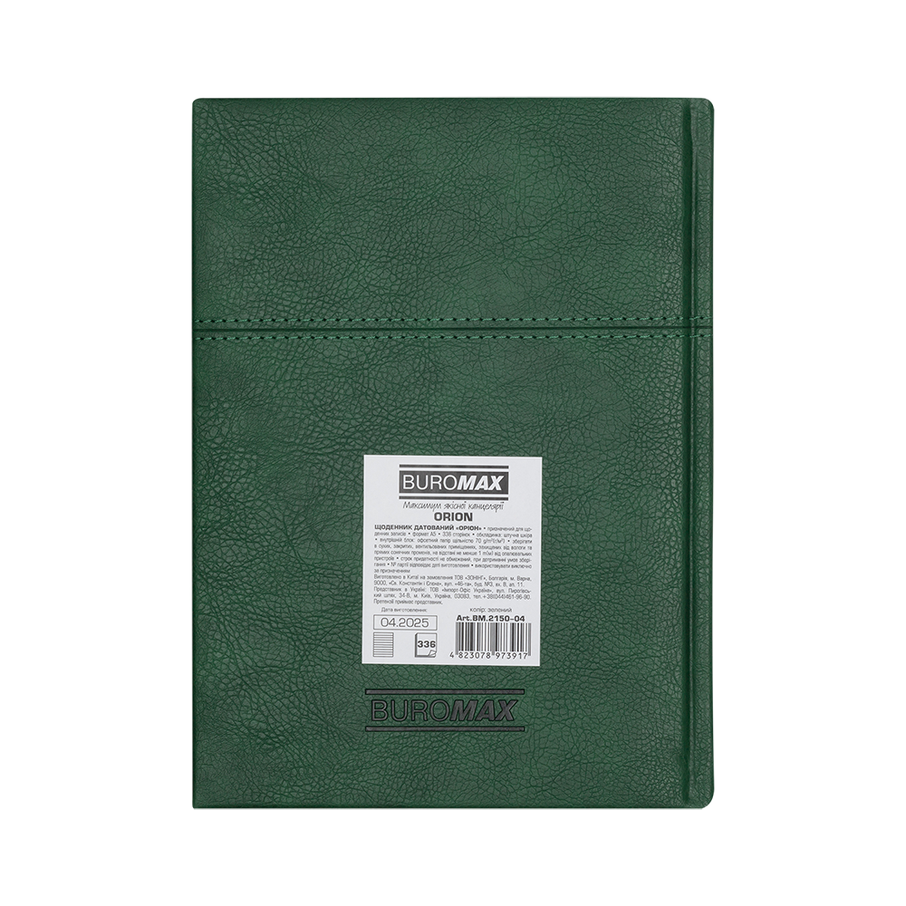 arrow_back_ios Щоденник датов. 2026 ORION, A5, зелений, штуч. шкіра/поролон